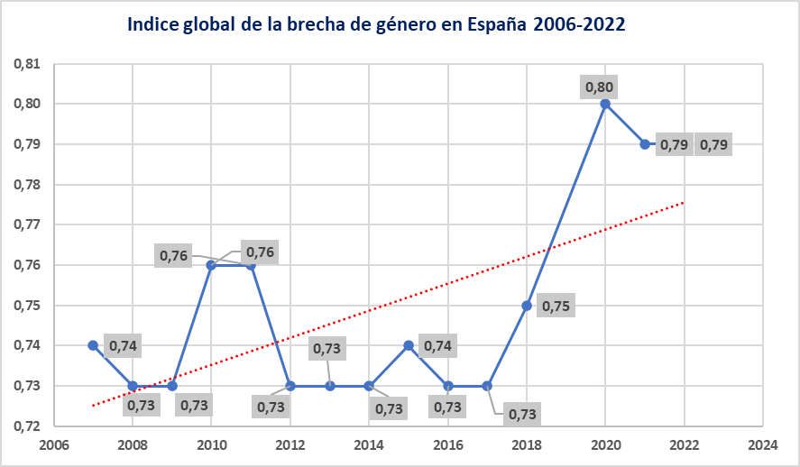 El índice global de la brecha de género tiene como objetivo medir la paridad dentro de los países en cuatro áreas fundamentales: economía, política, salud y educación. En el caso de España, cabe preguntarse por qué en 2022 la situación de la mujer empeora con respecto al 2020. A la luz de los datos anteriores, quizá convenga analizar la redistribución de los poderes públicos, el uso de las políticas sociales y del sistema impositivo, sin perder la perspectiva de su interacción con el crecimiento económico y el tejido productivo.